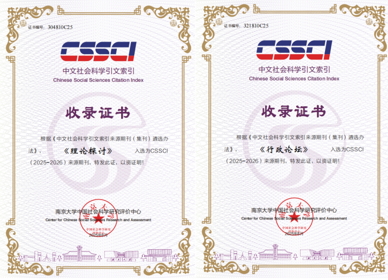 近日,经南京大学中国社会科学研究评价中心根据《中文社会科学引文索引来源期刊(集刊)遴选办法》评定,乐动网页版登录入口(黑龙江省行政学院)主办的《理论探讨》《行政论坛》入选CSSCI(2025-2026)来源期刊。